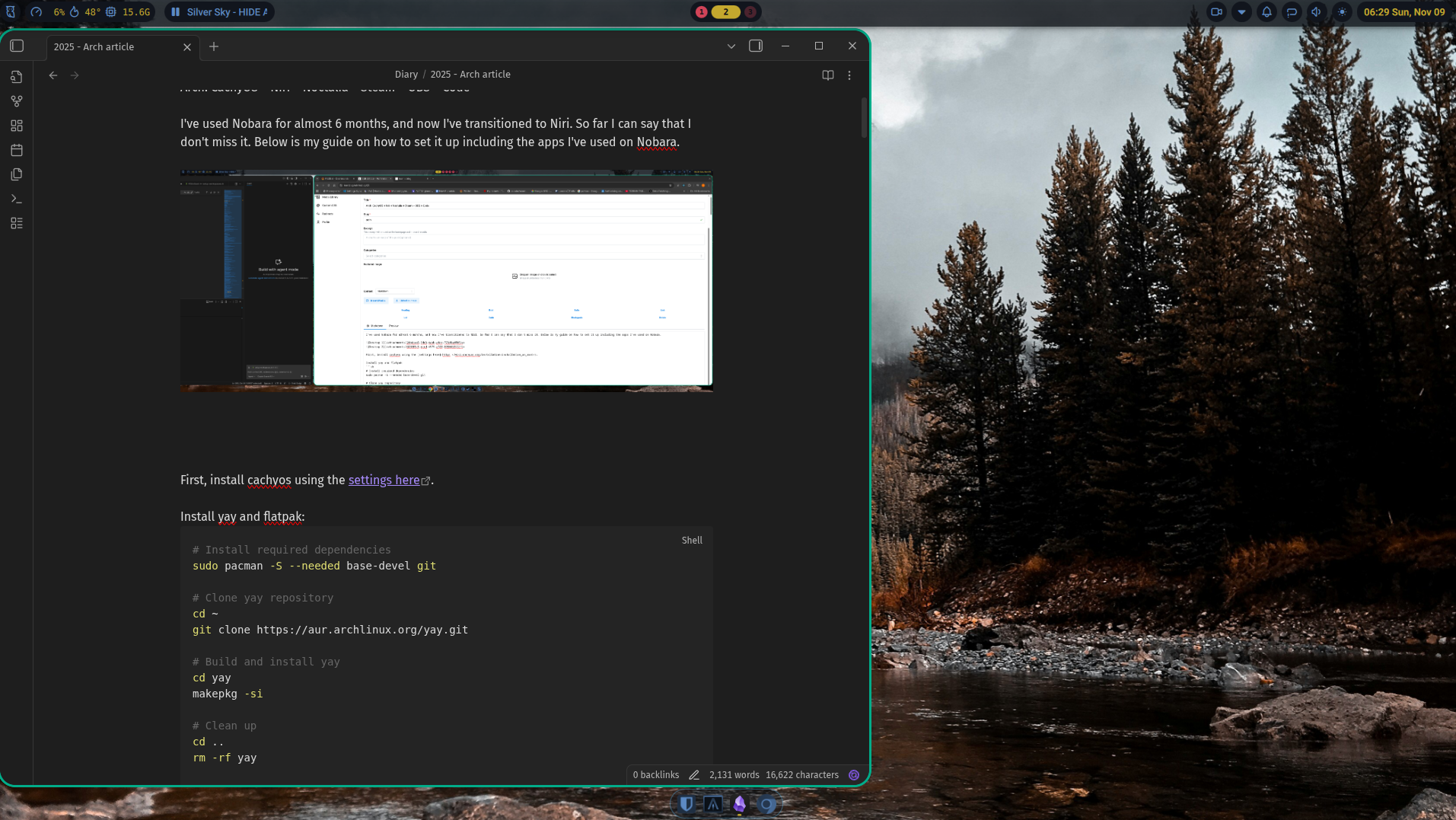 Arch: CachyOS + Niri + Noctalia + Steam + OBS + Code